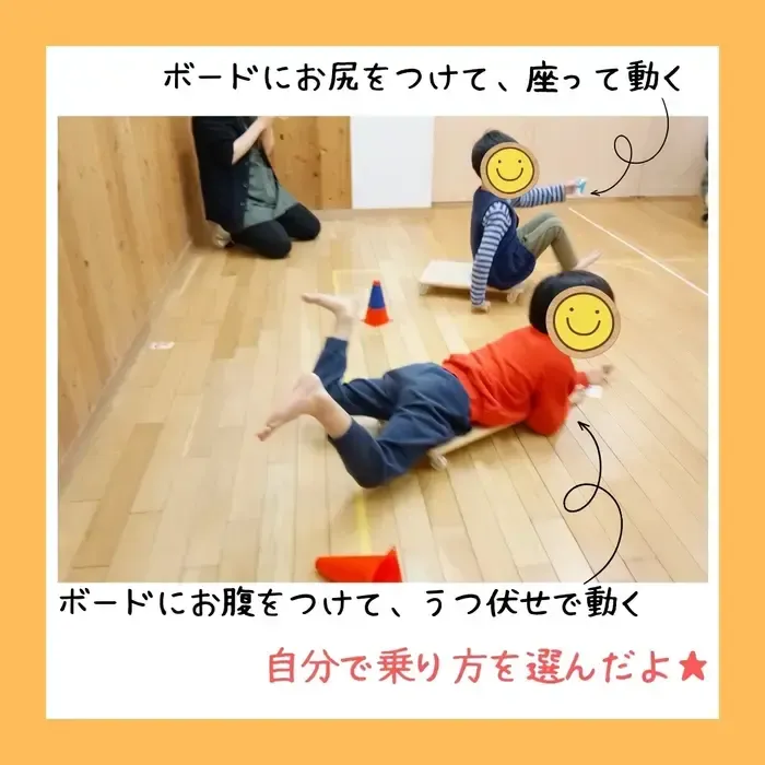 座って漕ぐ・うつ伏せでスーパーマンのように進むなど、好きな乗り方を選んでスタート✨