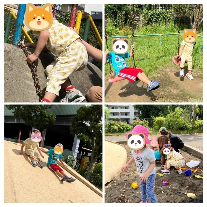 滑り台や砂場、ブランコへ分かれてニコニコ笑顔😊