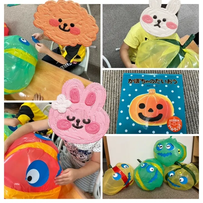 今日は絵本【かぼちゃのだいおう】の世界をポリ袋をつかってみたて遊びをしました🎃