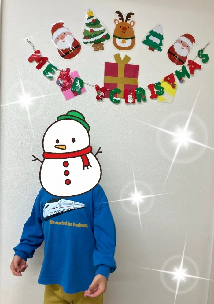 通所するなり“クリスマスだ〜😆❤️”と喜び、早速フォトスポットの前でハイポーズ♡