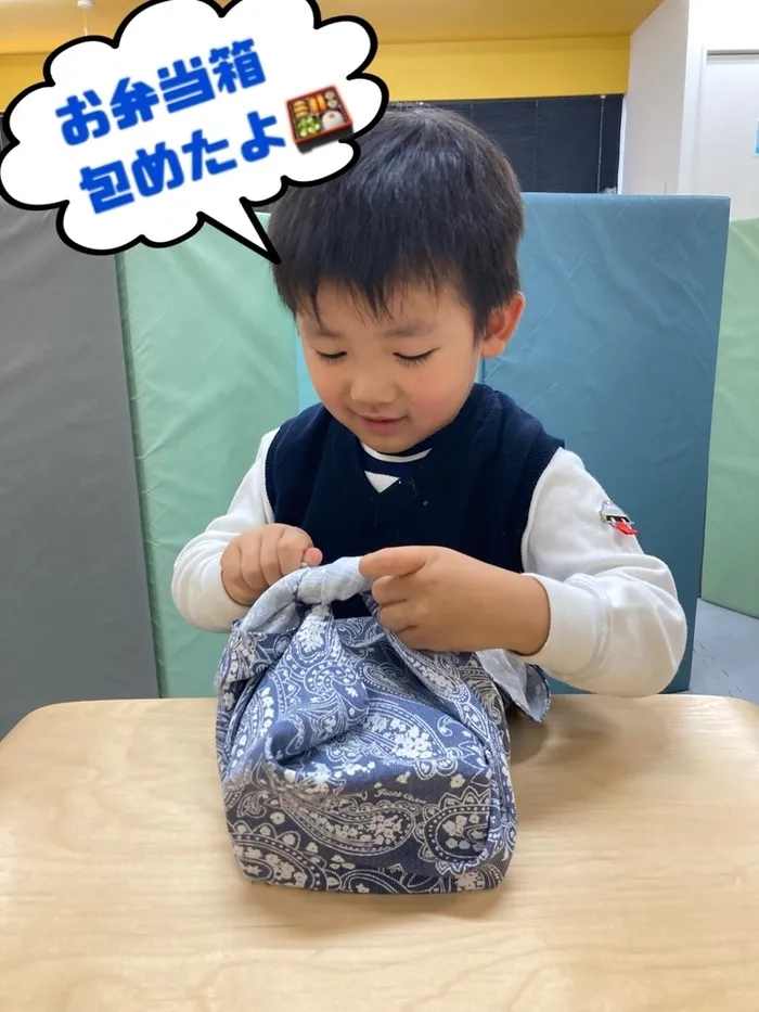 完成したお弁当包みを、誇らしげに先生に見せてくれる姿もとても微笑ましかったです💛