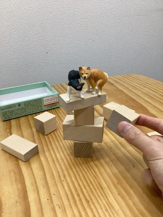 犬と猫のフィギュアを乗せて完成した瞬間、