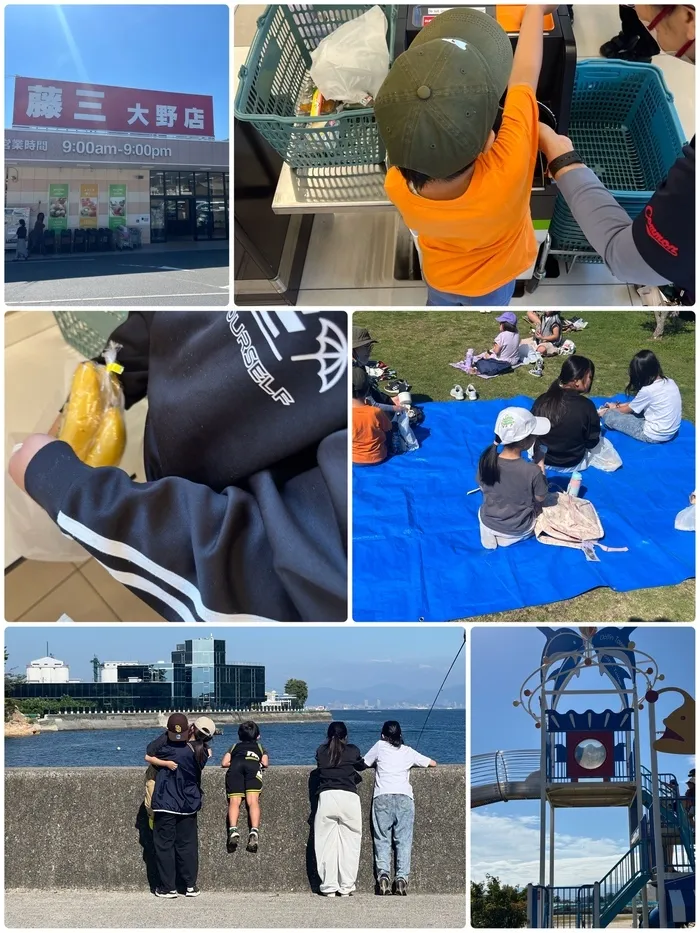 本日はお買い物練習実践で、スーパーで昼食を購入して、公園でみんなで一緒に食べて遊びました🙌🙌🤗「これくらいなら全部食べれる?」「お金足りるかな?」回数を重ねてきて、考えながら子どもたちもお買い物をします😊アドバイスもしあってお買い物する様子も見られましたよ😉公園ではレジャーシートを敷いてみんなで一緒に食べました🍱外で食べると美味しいねと言いつつ、食べました😋今日は良いお天気で、少し暑いくらいでしたが、元気いっぱい遊びました🙌