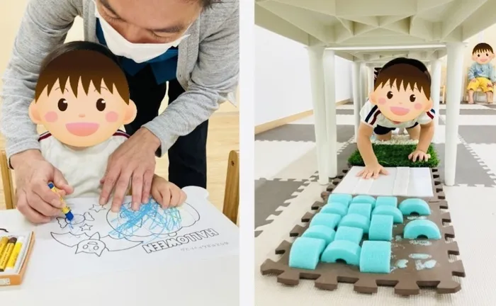 (日課)マラソン→持久力・下肢筋力・周りを見る力・心肺機能向上 絵本読み聞かせ→想像力・発想力・聞く力・見る力 (運動)サーキット→ 体幹筋力・バランス・姿勢保持 (学習)机上学習→集中力・姿勢保持 ・創造力 【取り組みの様子】 今回は、順番待ちや好きな活動が終わった時の切り替えが難しかったです。事前に誰の次なのか伝え、そこまでは待てましたが、自分の順番が終わると体が動くことが止まらなかったので声をかけています。サーキットは机トンネル・マット・トランポリンは出来ていました😊切り替えが出来るように、はじめくんの気持ちに共感をしながらおしまいということを伝えています。