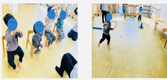 朝の会では先生のお手本をよく見て曲のテンポに合わせて積極的に手遊び歌を行えていました♪自由遊びではブロックで四角形を作り繋げ、大きな車を作っていました☺