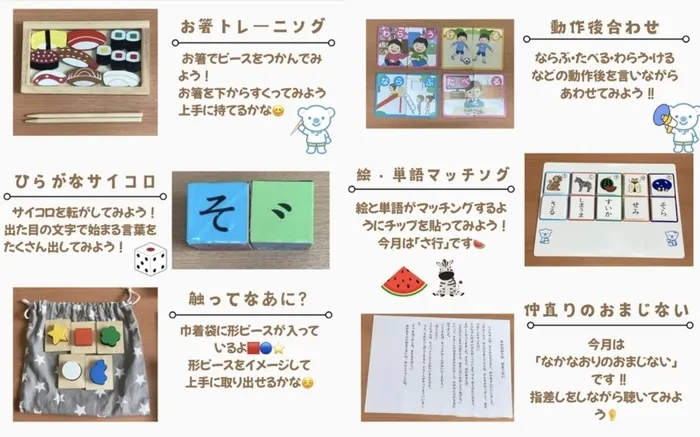 11月はお箸の練習や暗唱絵本、もじかきうたなど様々な教材を使います📕