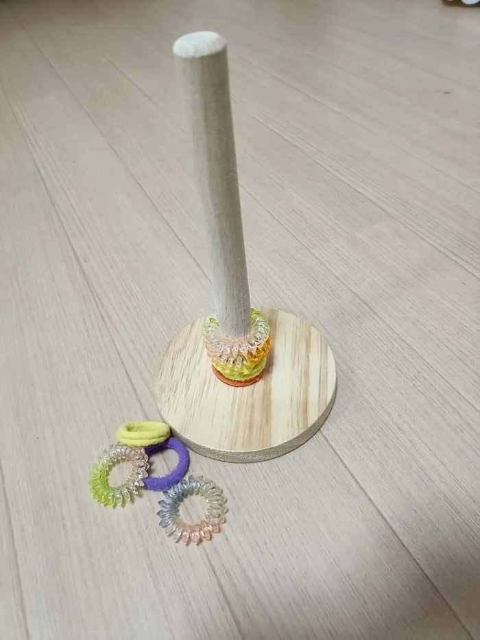 色分けリング通しにすると、遊びながら色の理解も育むことができます😊
