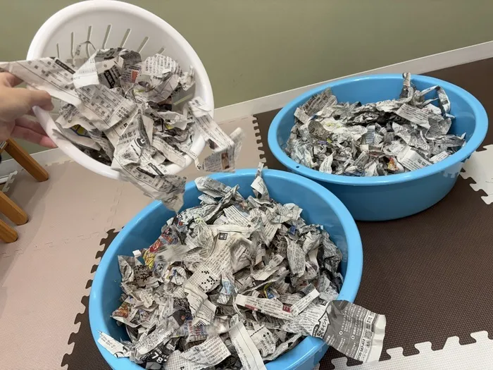 今週は個別支援の後の集団活動で、新聞紙ちぎり📰を行っています🍀