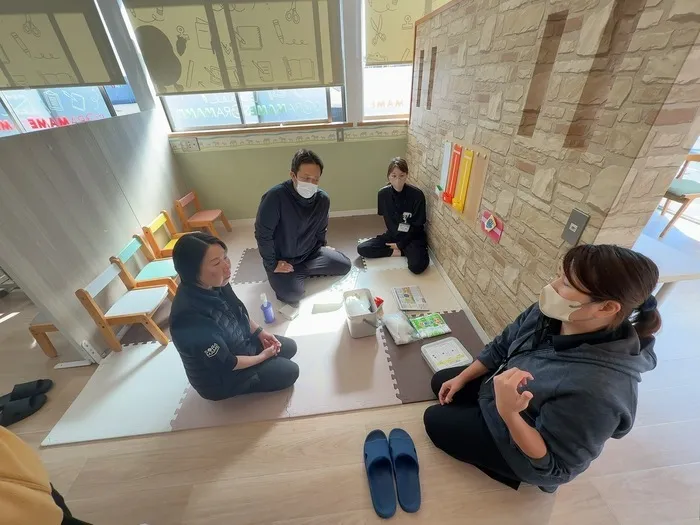 本日は、小集団活動中にお子さんが嘔吐した場面を想定して、対応方法を確認しました!