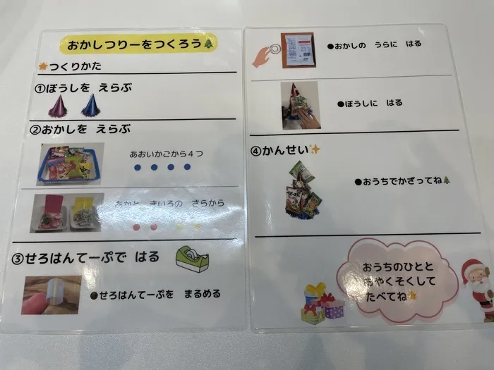 クリスマスイベントの中で、その子の認知発達の段階に合わせて、手順書を見ながら制作を進める機会も作っています♪