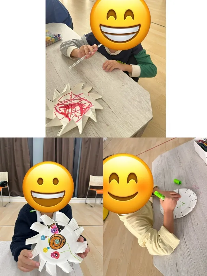 11月の創作では、紙皿で吹きゴマを作りました🌀