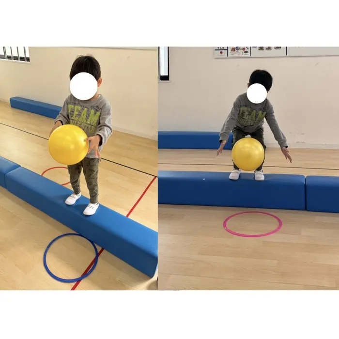 今回は運動の「平均台ボールキャッチ」をご紹介させていただきます🎈