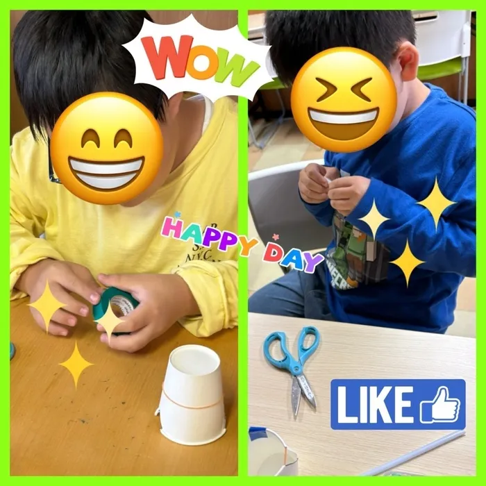 残りの時間はマスキングテープで紙コップや矢をデコレーションしたり、カラーペンで好きな絵を描いたりしました(´ω`)