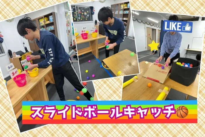 ボールをたくさんキャッチできる+色分けが正しく行えているかで競いました!