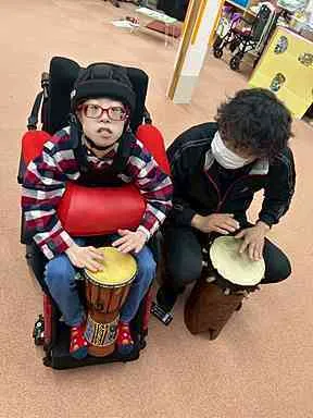 今日は、ジャンベをたたいてみんなで音楽を楽しんだよ。
