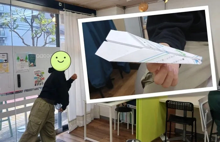 一見、昔ながらの遊びに見える「紙ヒコーキ作り」ですが、
