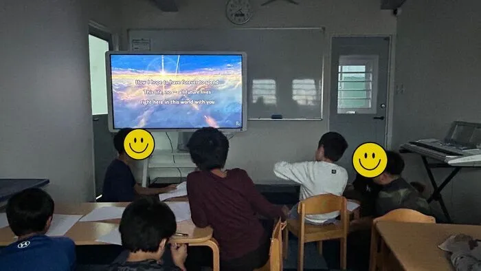 今日はEnglishの時間に、映画『君の名は。』の主題歌『スパークル』を使った、英語の歌詞穴埋めクイズに取り組みました❕
