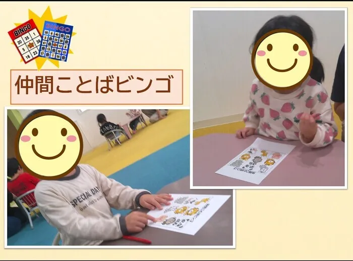 たて・よこ・ななめが揃ったら「ビンゴ!!」「そろったよー!」と教えてくれました♪