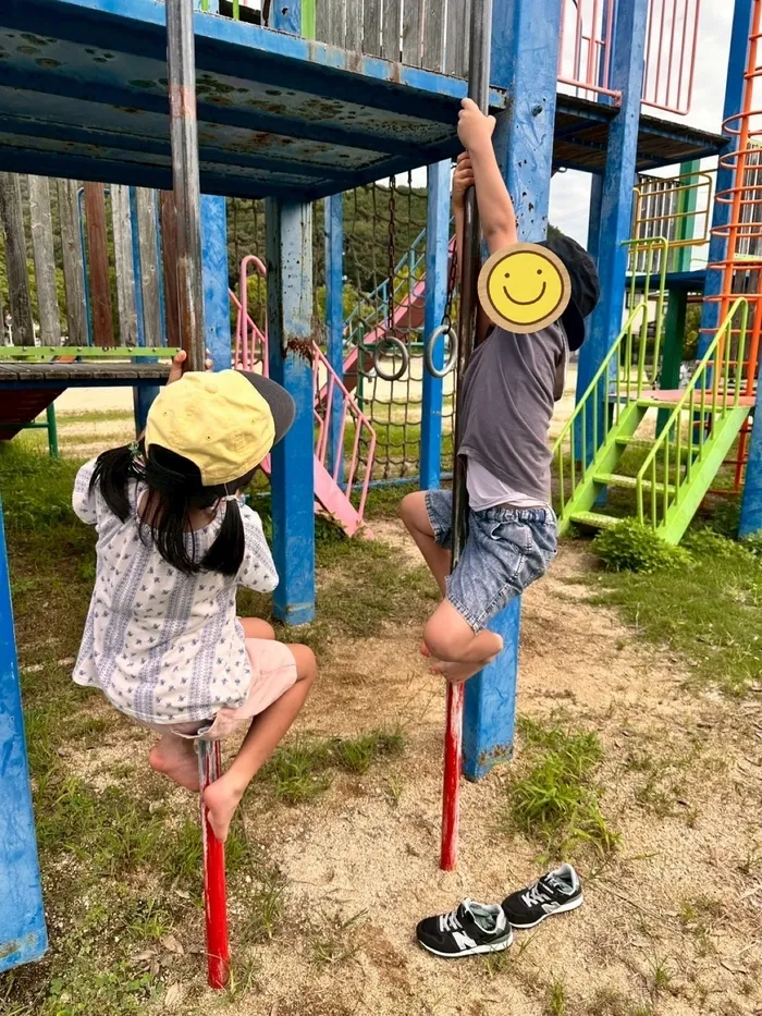 いつも行く公園にはない、つり革遊具やのぼり棒にも挑戦!