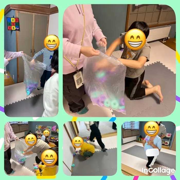 どの子も自分の色の玉をしっかり確認しすごいスピードで袋に入れていました!