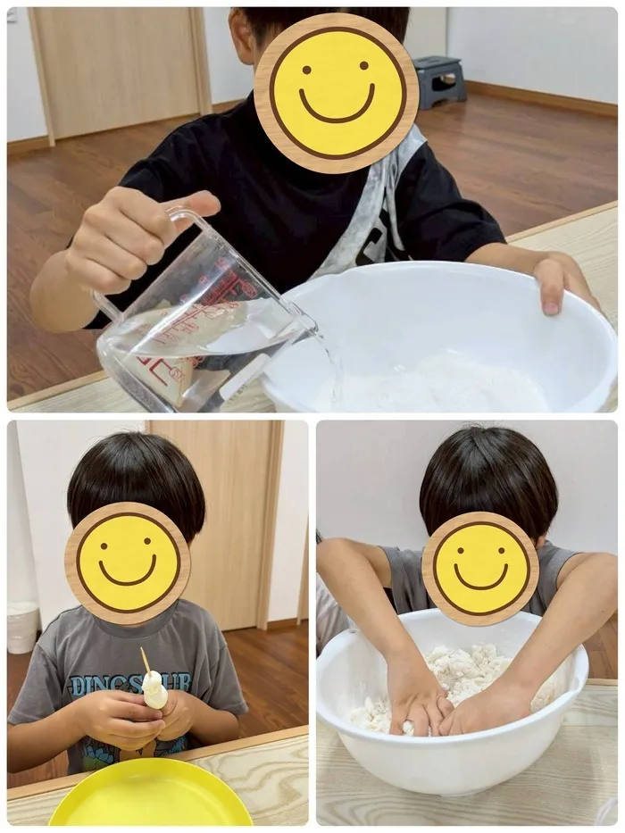 何度も調理プログラムを行っていることもあり、慣れた手つきで水を入れたり、粉を練ったりしている子どもたちでした✨