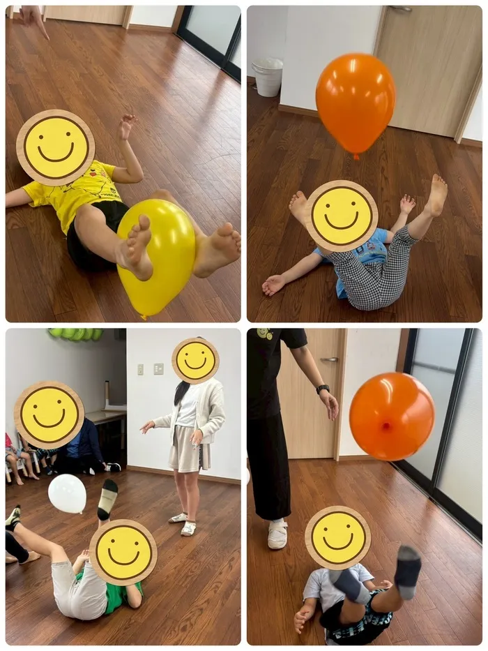 今回の集団療育では、【風船足キャッチ】を行いました!