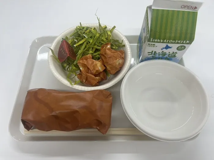 上記の写真は、先日の就学前小集団の特別プログラムにて実施した、【給食体験】です!