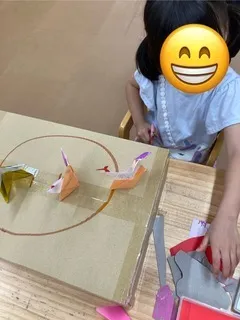 折り紙のお相撲さんというシンプルな遊びが、子どもの発想力によって思いがけない広がりを見せてくれました。