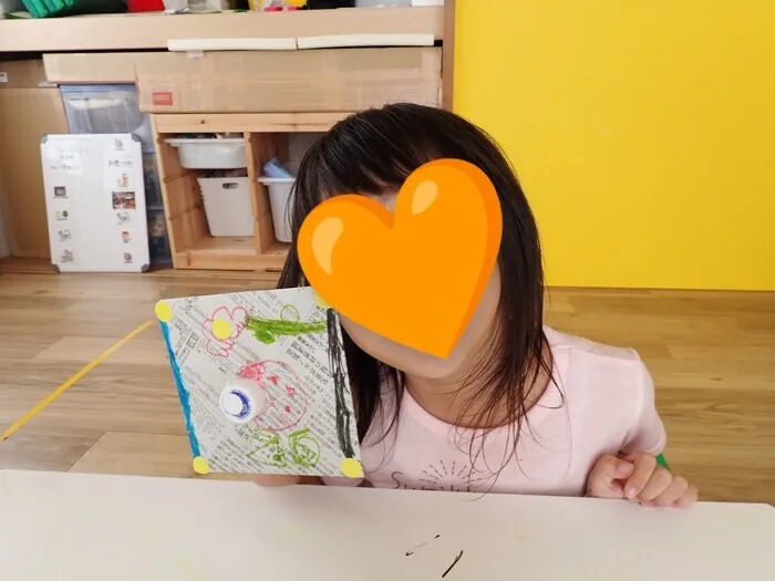 新聞紙を折って、絵を描いて、シールを貼って自分だけのかわいいコマを作ることができました‼️クルクルとよく回るコマに笑顔になっていました☺️🌟