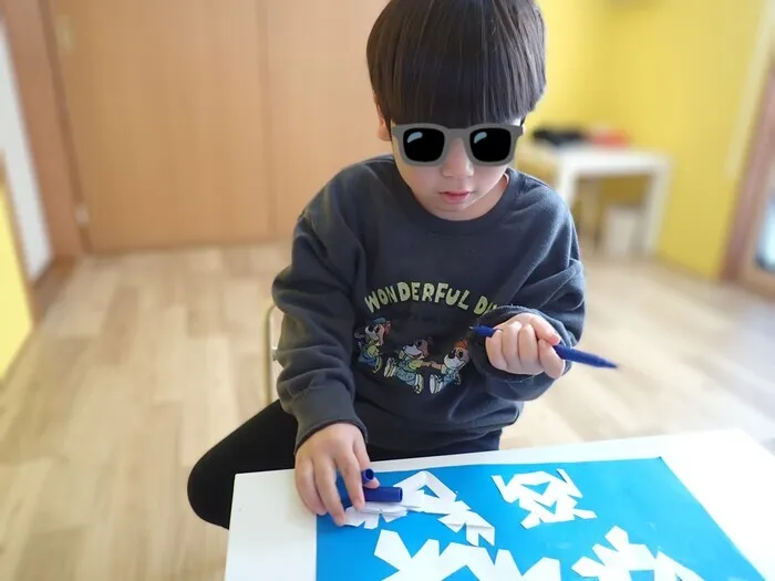 今日の児童発達支援は、「製作活動」と「運動遊び」を行いました‼️ 今朝、雪が降っていたのでそれにちなんだ紙を折ってからハサミを好きなように入れて広げると雪の結晶のように見えることをしました🌟偶然に出来上がる模様にお子さんは関心を寄せていました🎶