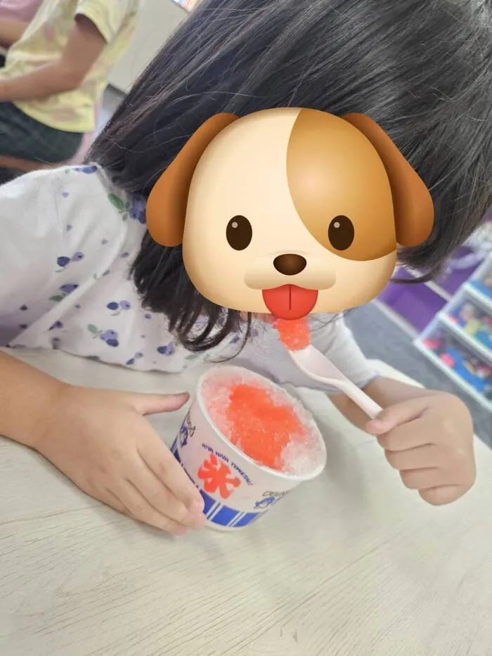 カップに入ったかき氷にいちご🍓メロン🍈ぶどう🍇ブルーハワイ🏝️の4種の中でシロップをかけ、美味しく食べました。