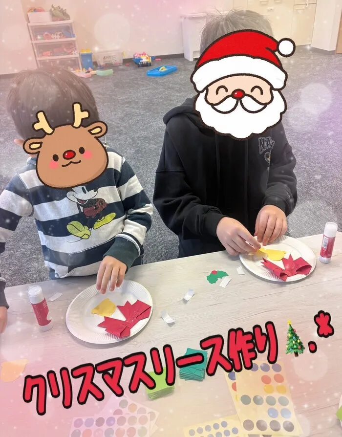 自由にパーツを貼って素敵なリースを作ってくれています☺
