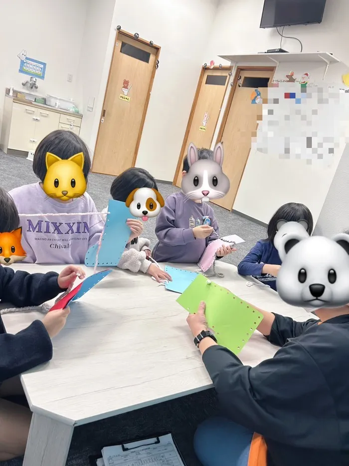 カラフルなサンタのブーツに靴ひもを通し、可愛い小物入れを作りましたが、指先を上手く使いながらの工作だったので、しっかり微細運動にもなりました🙆