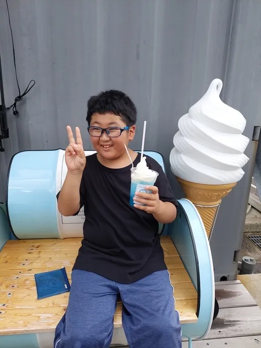たっくさん公園で遊んだ後に、ソフトクリーム屋さんに行きました。