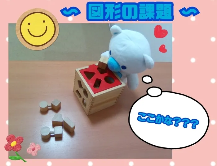 ブロックの形をよく見て穴に落として遊ぶ教材です♪