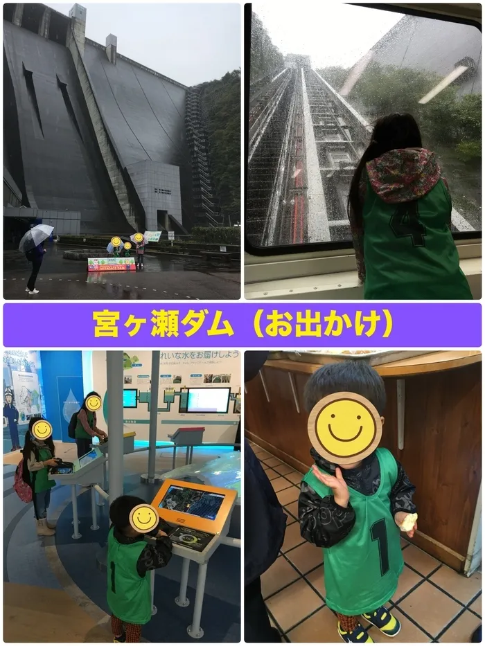 到着すると、ダム下までエレベーターでおりて、工事用のトロッコに乗りました。その後は、ダムに併設されている「水とエネルギー館」を見学しました。昼食を食べてから「おぎのパン」で今日のおやつパンを買いました。お出かけ(集団行動)のルールをしっかり守って楽しく過ごすことができました。
