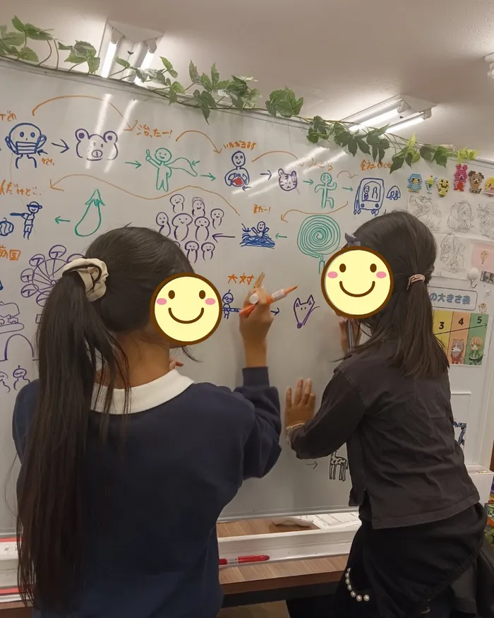 ある子は、物語のように絵をつなげていくスタイルで描いていて、見ている方もワクワク💓