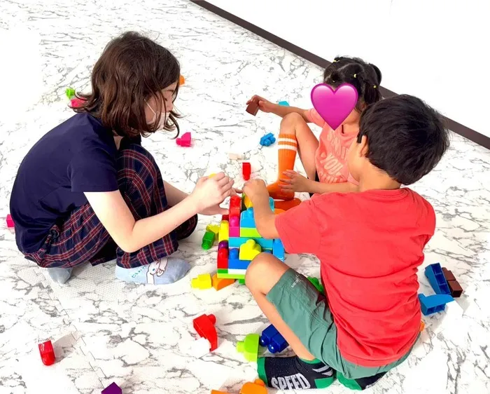 そのたびに工夫して、全てブロックを使い高い塔が出来上がり。