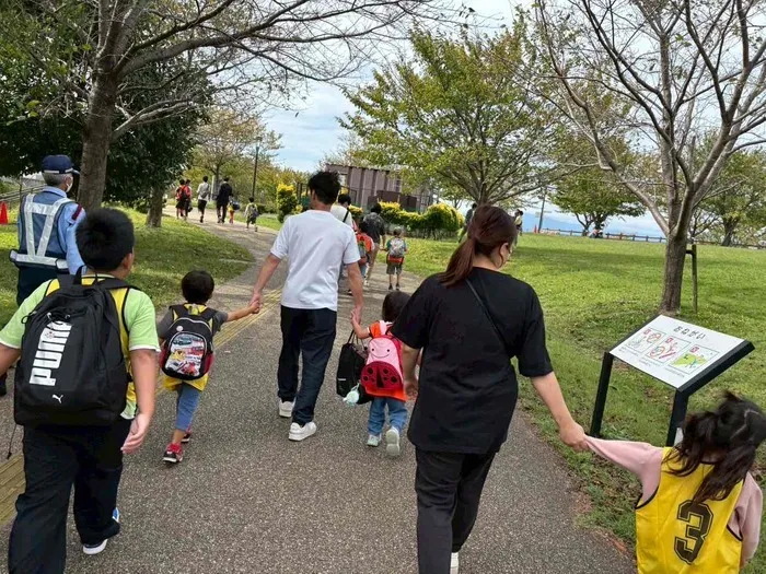 大きいお兄ちゃん、お姉ちゃんは小さなお友達の手をつないでぐれました。