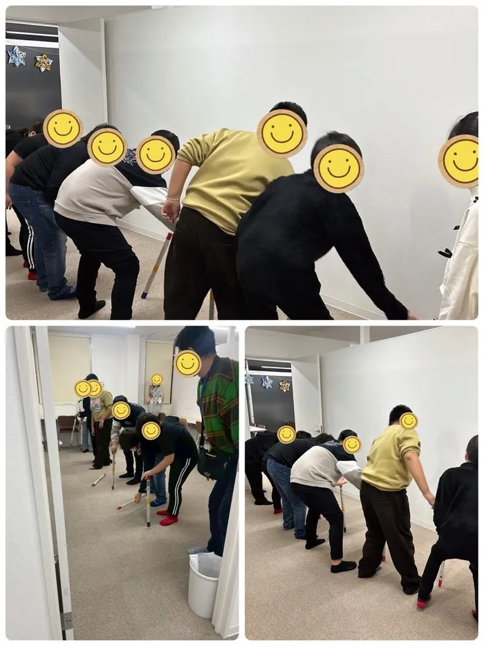 横一列に並び、手で支えていた棒を「ようい、はい!」