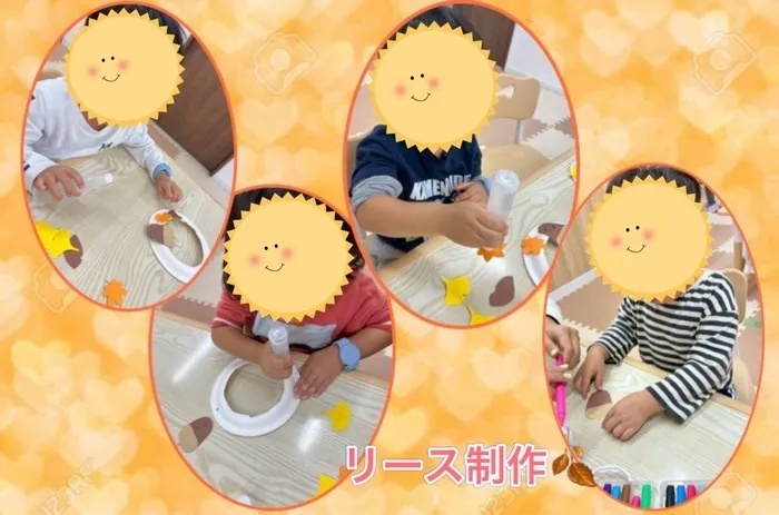 どんぐりには顔を描いたりして、子どもたち一人ひとりのかわいいリースを作ることができました☺️