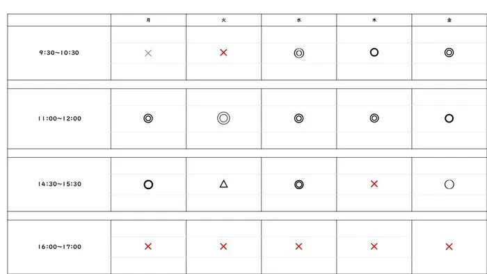 ・11:00~は全日空きがございますので、落ち着いた空間での療育のご希望の方は最もお勧めしている時間帯です