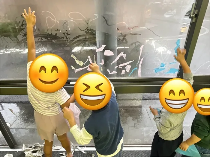 ガラスにお絵描きをする活動を行うことを伝えると児童たちのテンションが上がっていました🤩