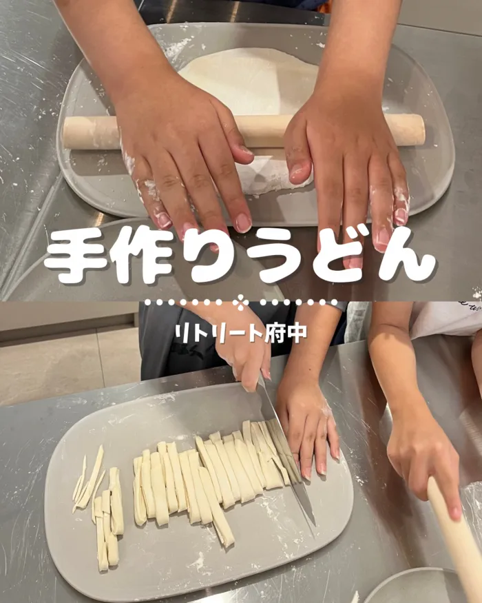 出来上がった生地を2時間ほど寝かせてから、生地を伸ばしたり、食べやすい細さに切ると、うどんの完成です👨🏻🍳