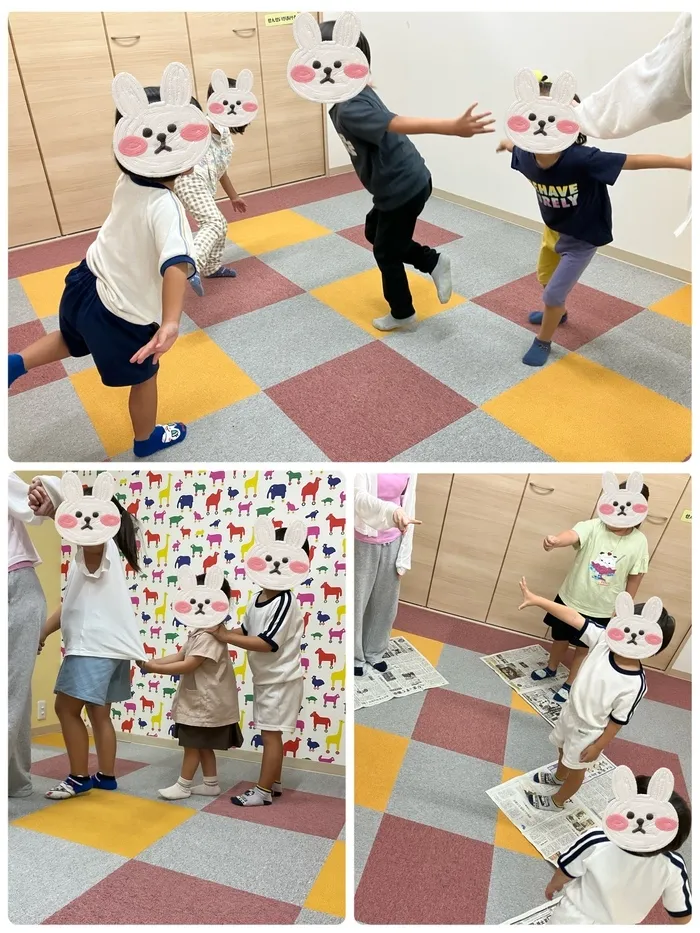 椅子取りゲームや、ポーズ合わせゲーム、新聞紙じゃんけん、ぞうさんとくもの巣など、色んな遊びをしていますが、どの遊びもみんな楽しんで積極的に参加してくれています😊