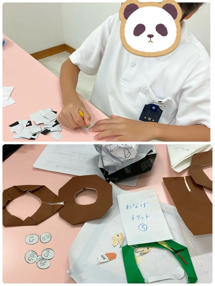 「先生はチケット作ってや!」「私も一緒に作るー!」と支援員やお友達と一緒に作りながら、「いつお祭りしよっか?」「◯曜日はどう?」「うん!そうしよ!!」とお友達と相談しながら、盛り上がっていました😆