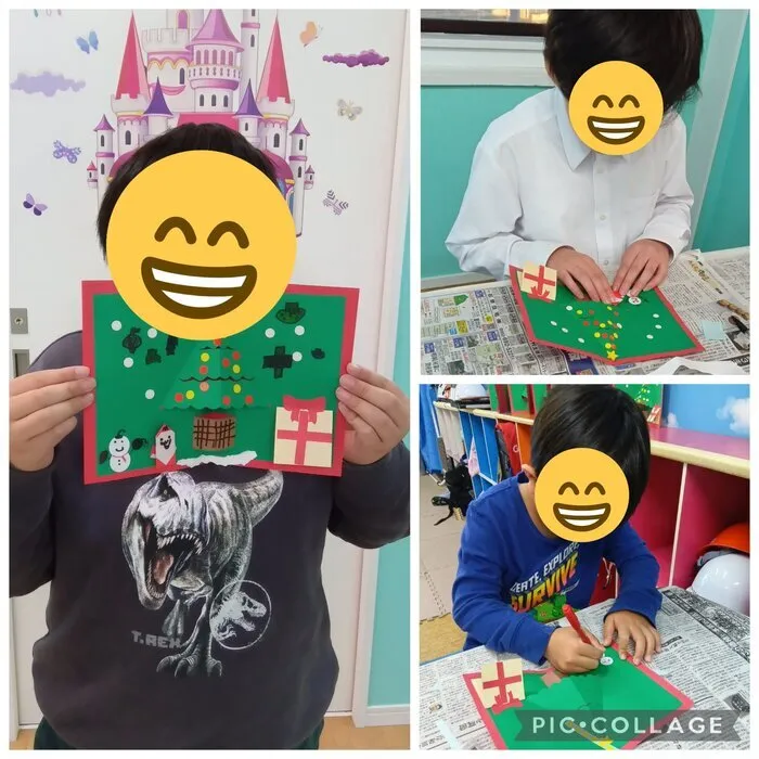 木にシールを貼って、1番上には星をつけて、キラキラなクリスマスツリーにしていきます✨