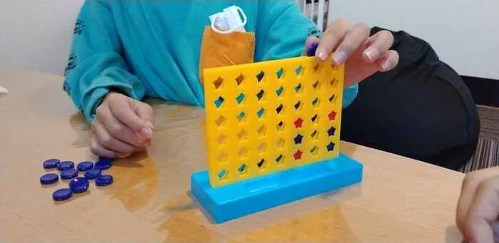 思考力やコミュニケーションの力も育つ4つ並べゲーム。負けたら悔しくてすぐに泣いてしまっていた子も、最近では「次がんばろう」と気持ちを切り替える事が出来るようになってきました。