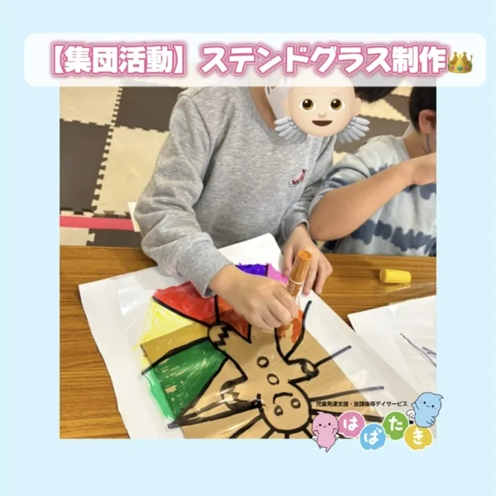今日は集団活動で【ステンドグラス制作👑】の様子をご紹介いたします🏵️