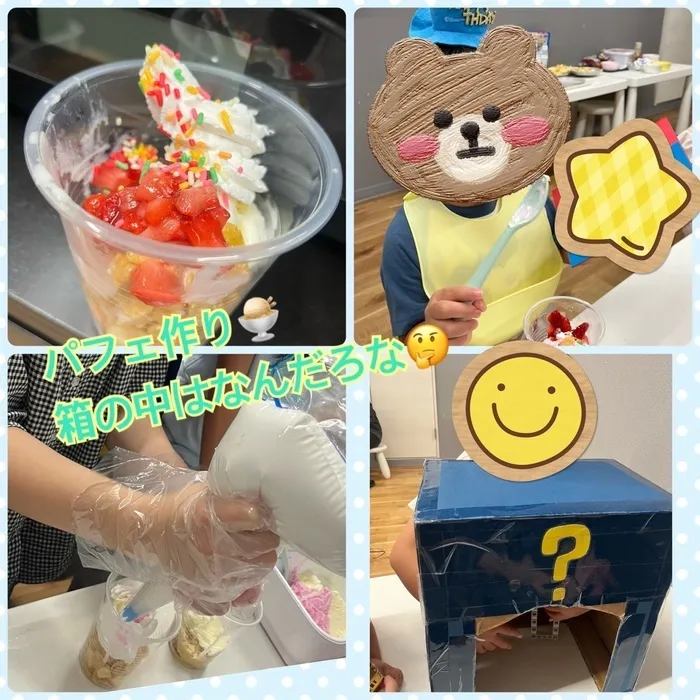 今日のイベントは、お誕生日会「パフェ作り🍨」、「箱の中はなんだろな🤔」でした✨